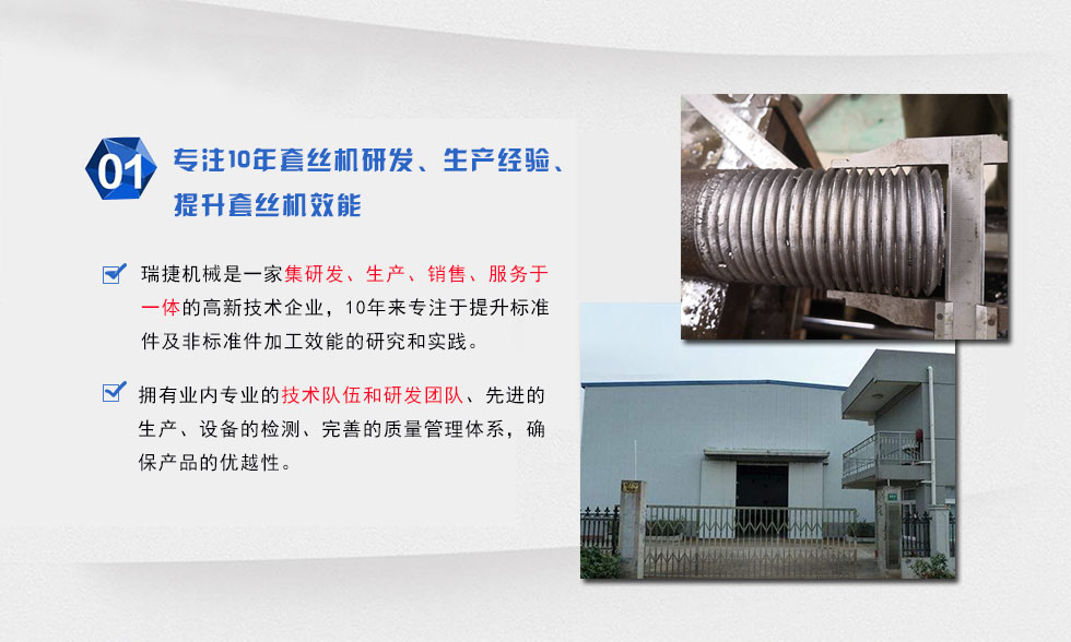 邢臺市瑞捷機械制造有限公司專業(yè)生產圓鋼套絲機,鋼管套絲機兩大系列,其特點主要展現(xiàn)為機頭的優(yōu)化改進,大幅度提高了加工螺紋絲頭的精確度和工作效率,有效解決了本行業(yè)在加工絲扣上端部易扭轉變形(絲扣加易擴口)、配件損耗高、加工效率低的技術難題。